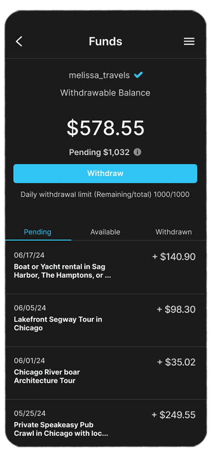 The earnings are calculated based on sale commissions. You, the creator, earn a commission for each booking your posts generates. Commission rates may vary based on travel experience and creator.